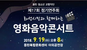 【[공 연]대관공연】동탄청소년교향악단 장소 동탄복합문화센터 야외공연장 기간 2018년 9월 19일 ~ 2018년 9월 19일 공연시간 2018/9/19 20:00 티켓정보 전석무료 관람등급 전체관람가 문의 031-8003-5231 동탄청소년교향악단 배너.jpg [ Size : 43.07KB, Down : 301 ] 미리보기 다운로드 670-3790px.jpg [ Size : 1.35MB, Down : 438 ] 미리보기 다운로드 목록보기