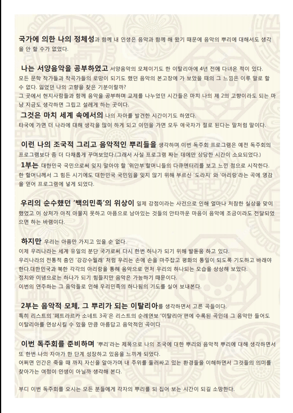 【[공 연]대관공연】제3회 손소연 피아노독주회 '뿌리'