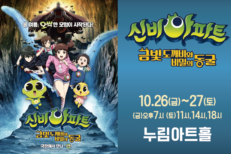 【[공 연]영화상영】신비아파트 : 금빛 도깨비와 비밀의 동굴 장소 누림아트홀 기간 2018년 10월 26일 ~ 2018년 10월 27일 공연시간 (금)19시, (토)11,14,18시 티켓정보 전석3천원 관람등급 전체관람가 문의 1899-3254 . 신비아파트_썸네일.png [ Size : 453.44KB, Down : 539 ] 미리보기 다운로드 신비아파트_상세상단.png [ Size : 2.03MB, Down : 492 ] 미리보기 다운로드 신비아파트_상세페이지.png [ Size : 6.06MB, Down : 2,572 ] 미리보기 다운로드 목록보기