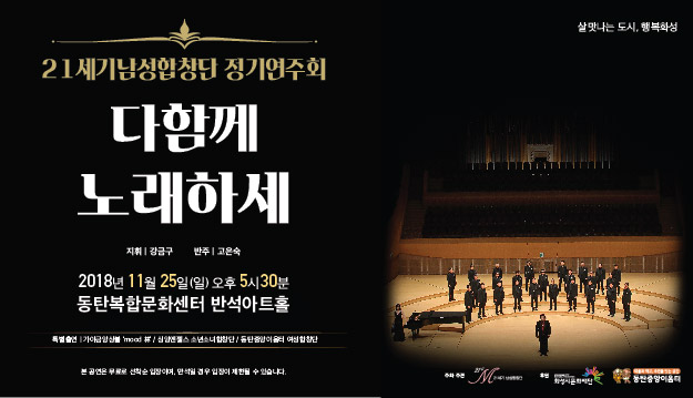 【[공 연]대관공연】21세기 남성합창단 장소 반석아트홀 기간 2018년 11월 25일 ~ 2018년 11월 25일 공연시간 17:30 티켓정보 전석무료 관람등급 만5세 이상 문의 031)376-9393 - 21세기남성합창단_반석아트홀_배너이미지.jpg [ Size : 79.38KB, Down : 760 ] 미리보기 다운로드 목록보기