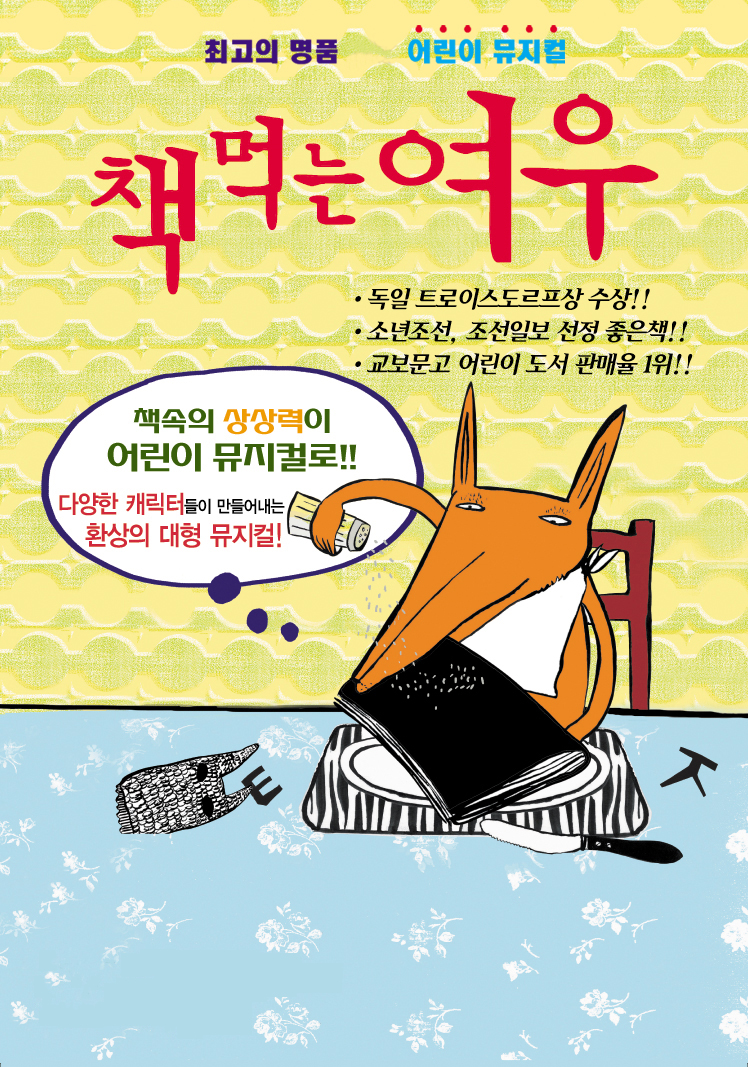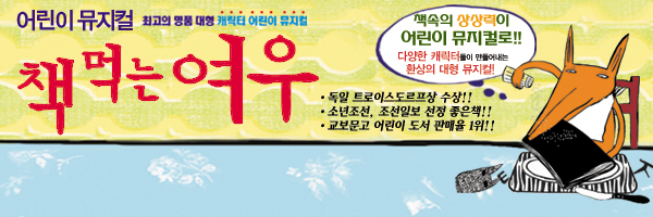 【[공 연]대관공연】어린이 베스트셀러 뮤지컬 <책먹는여우> 장소 반석아트홀 기간 2019년 5월 22일 ~ 2019년 5월 23일 공연시간 10시 40분 티켓정보 전석 35,000원(단체관람시 할인가능) 관람등급 전체관람가 문의 010.2284.4842 (극단 가람) - 책여우-가로배너.jpg [ Size : 145.46KB, Down : 303 ] 미리보기 다운로드 책먹는여우포스터.JPG [ Size : 890.39KB, Down : 1,240 ] 미리보기 다운로드 여우배너.jpg [ Size : 2.06MB, Down : 321 ] 미리보기 다운로드 목록보기
