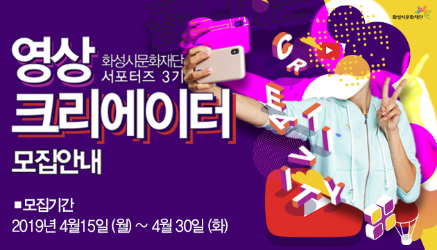 【[기 타] 행사】 화성시문화재단 영상서포터즈 모집 장소 기타 기간 2019년 4월 15일 ~ 2019년 4월 30일 공연시간 티켓정보 관람등급 20세~30세 문의 031-8015-8115 화성시문화재단 영상서포터즈 모집바로가기>>>>http://www.hcf.or.kr/hcf/61?action-value=6f24b0507b1726de808ee2dc8b07060b&action=read&chathead=%ED%99%94%EC%84%B1%EC%8B%9C%EB%AC%B8%ED%99%94%EC%9E%AC%EB%8B%A8 미디어보드배너.jpg [ Size : 230.61KB, Down : 299 ] 미리보기 다운로드 영상서포터즈모집.jpg [ Size : 3.48MB, Down : 289 ] 미리보기 다운로드 화성시문화재단_영상크리에이터모집.jpg [ Size : 1.79MB, Down : 413 ] 미리보기 다운로드 목록보기