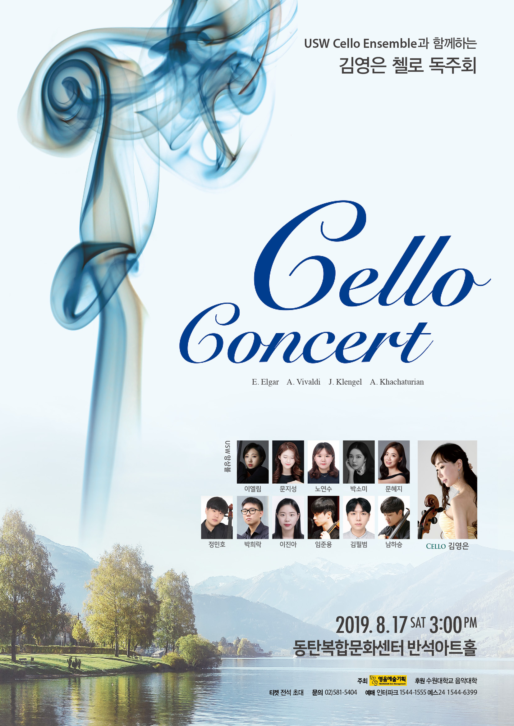 【[공 연]대관공연】USW Cello Ensemble 김영은 첼로독주회 장소 반석아트홀 기간 2019년 8월 17일 ~ 2019년 8월 17일 공연시간 15:00 티켓정보 전석무료 관람등급 8세이상 관람가능 문의 영음예술기획 02-581-5404 - 180x120_전면.jpg [ Size : 25.68KB, Down : 158 ] 미리보기 다운로드 230x270_후면.jpg [ Size : 49.37KB, Down : 171 ] 미리보기 다운로드 전면.jpg [ Size : 693.06KB, Down : 776 ] 미리보기 다운로드 후면.jpg [ Size : 1.53MB, Down : 757 ] 미리보기 다운로드 목록보기