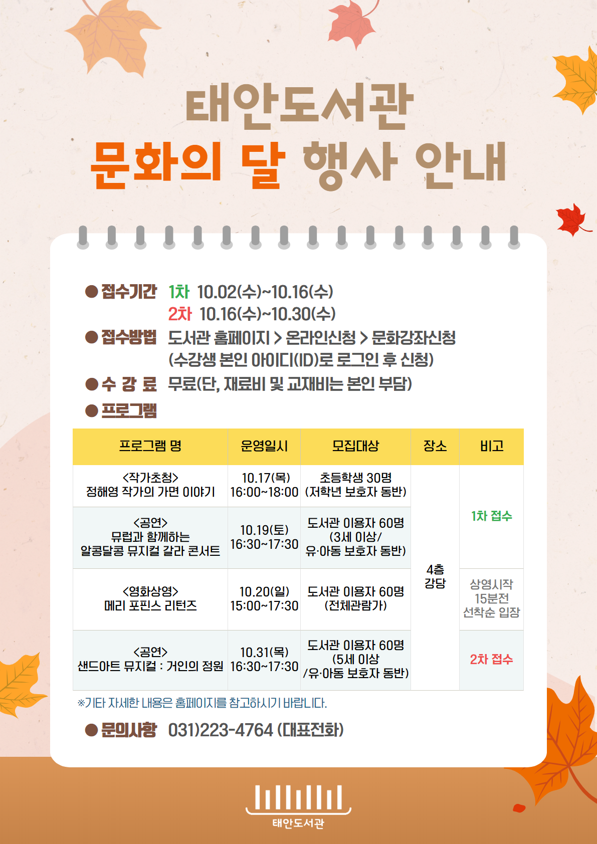 【[기 타] 행사】태안도서관 “뮤럽과 함께하는 뮤지컬 갈라 콘서트”