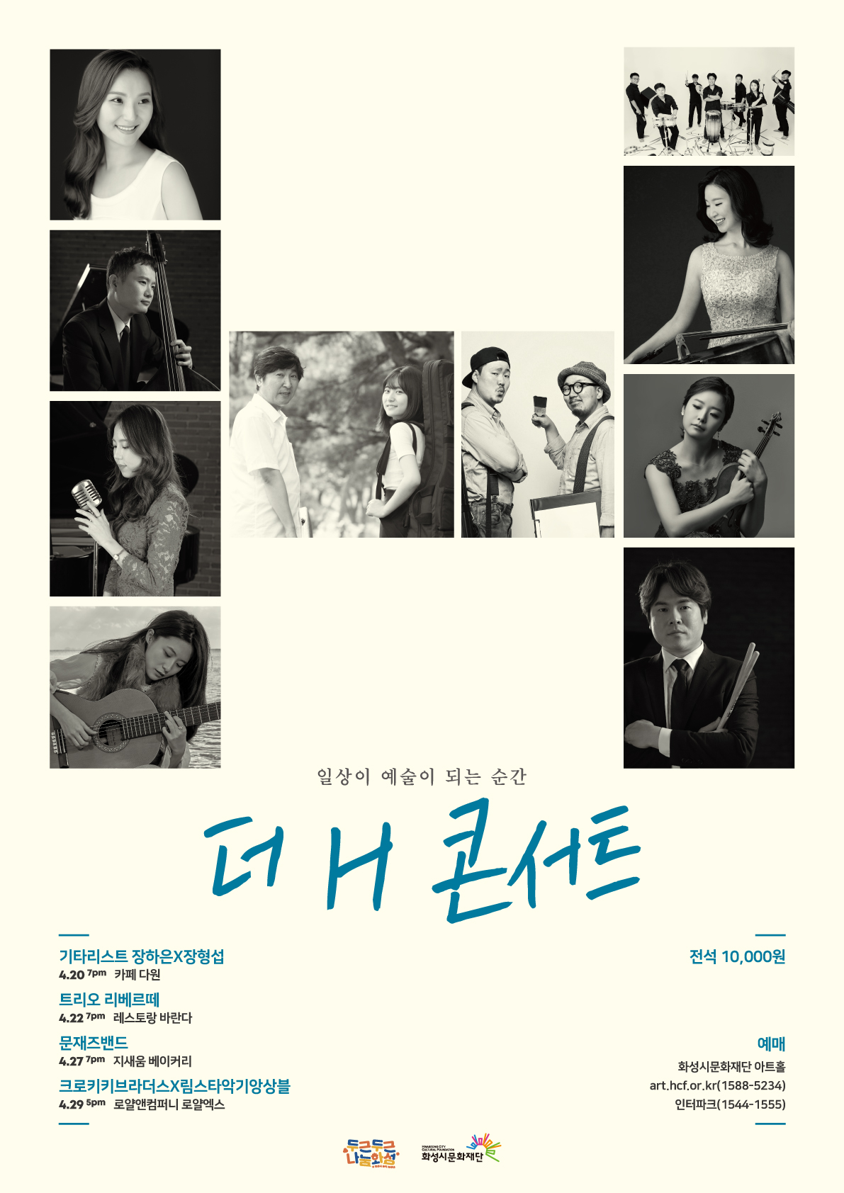 【[공 연]기획공연】더 H 콘서트 '기타리스트 장하은 X 장형섭' 장소 카페 다원 (경기 화성시 정남면 세자로 303번길 22-57) 기간 2021년 4월 20일 ~ 2021년 4월 20일 요일 화 공연시간 19시 (60분 공연) 티켓정보 전석 1만원 관람등급 전체관람가 문의 1588-5234 ● 4월 22일 (목) 트리오 리베르떼 바로가기● 4월 27일 (화) 문 재즈밴드 바로가기 ● 4월 29일 (목) 크로키키 브라더스X림스 타악기 앙상블 바로가기 인터파크 218_280-100.jpg [ Size : 638.39KB, Down : 58 ] 미리보기 다운로드 4월-더에이치콘서트-포스터_수정4.jpg [ Size : 566.73KB, Down : 59 ] 미리보기 다운로드 상세페이지-100.jpg [ Size : 1.33MB, Down : 1,362 ] 미리보기 다운로드 202111261143200009.jpg [ Size : 24.74KB, Down : 68 ] 미리보기 다운로드 202111261143200009 목록보기
