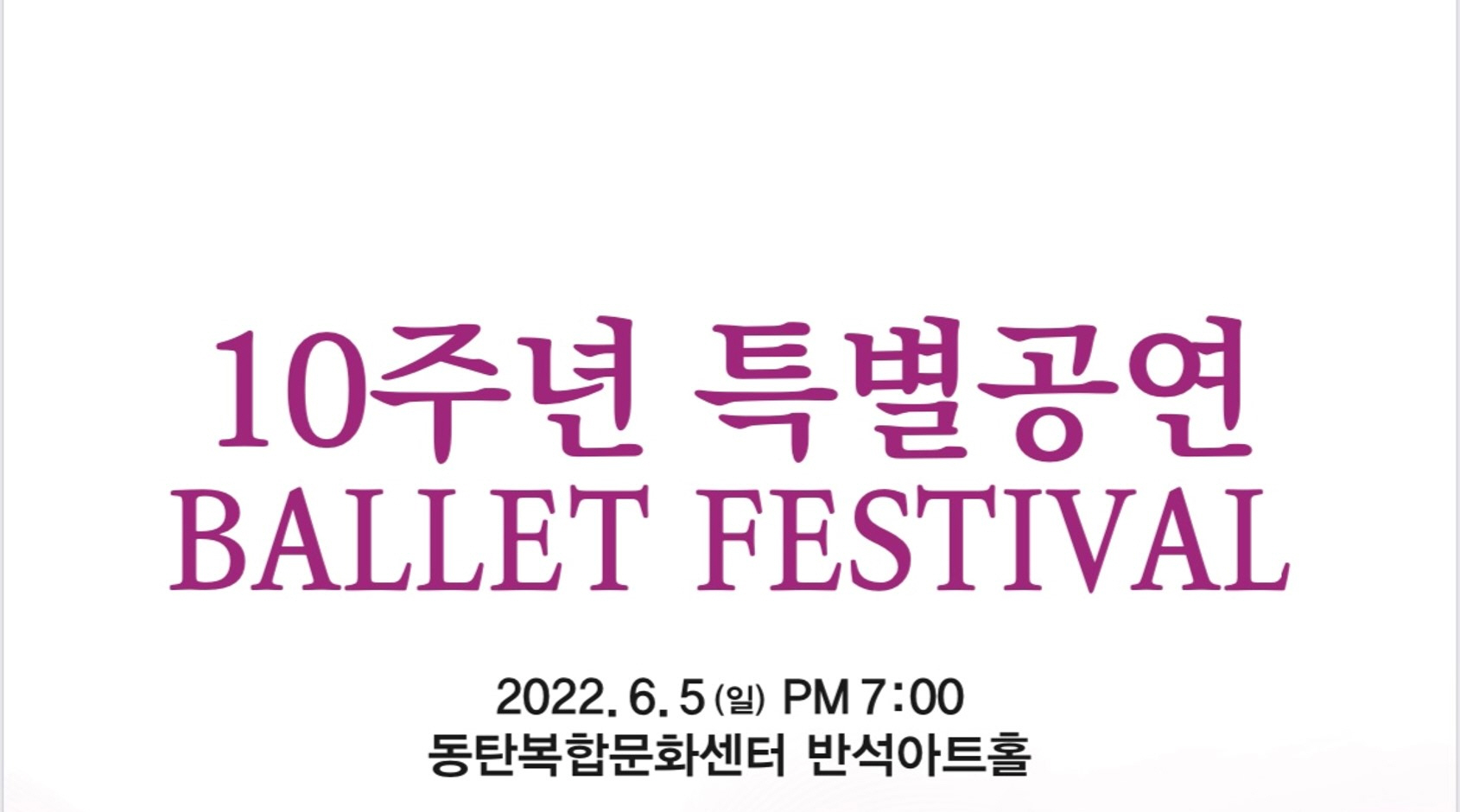 【[공 연]대관공연】10주년 특별공연 BALLET FESTIVAL 장소 동탄복합문화센터 반석아트홀 기간 2022년 6월 5일 ~ 2022년 6월 5일 요일 일 공연시간 2022년 6월 5일(일) PM7:00 (소요시간: 2시간) 티켓정보 전석 1만원 관람등급 전체관람가 문의 031.8015.2944 .. 목록이미지 -문현진 발레단.jpg [ Size : 278.64KB, Down : 85 ] 미리보기 다운로드 목록이미지 -문현진 발레단 문현진 발레단(수정).jpg [ Size : 372.24KB, Down : 653 ] 미리보기 다운로드 문현진 발레단(수정) 목록보기