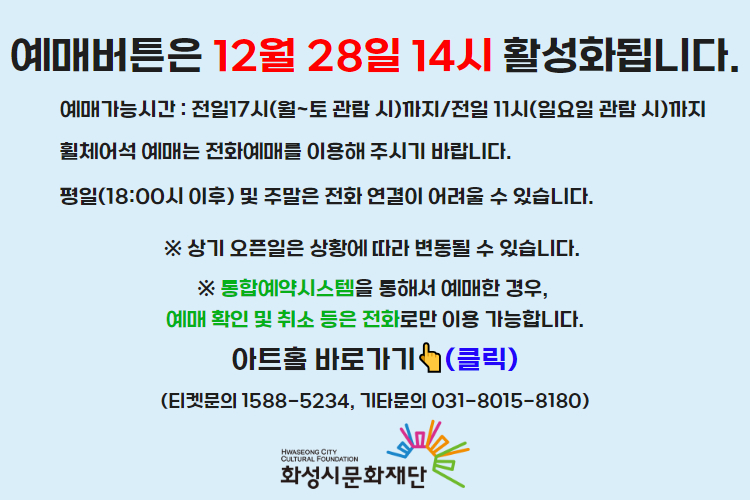 - 2024.1.31.(수) 11:00, 15:00 / 2024.2.1.(목) 11:00, 15:00 (60분)