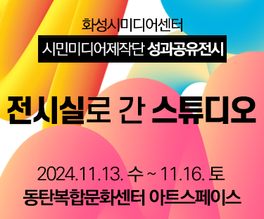 【전 시】시민미디어제작단 성과공유전시 <전시실로 간 스튜디오> 장소 동탄복합문화센터 아트스페이스 기간 2024년 11월 13일 ~ 2024년 11월 16일 요일 수, 목, 금, 토 공연시간 티켓정보 무료 관람등급 문의 031.8003.6463 - 2 모바일.jpg [ Size : 103.54KB, Down : 161 ] 미리보기 다운로드 2 모바일 목록보기