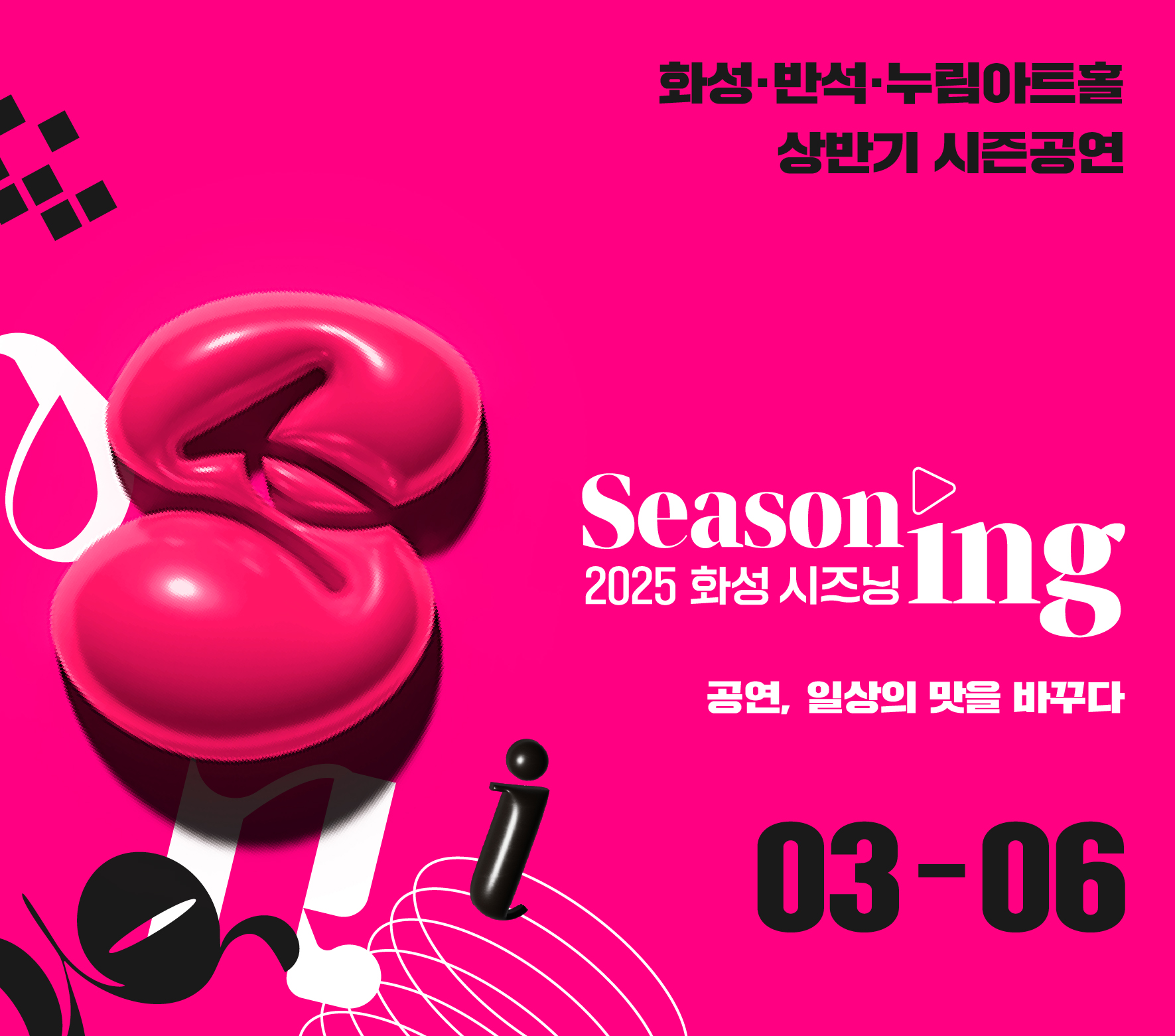 【공 연】2025 화성시문화관광재단 상반기 기획공연 장소 추후 안내 기간 2025년 3월 7일 ~ 2025년 6월 28일 요일 화, 수, 금, 토, 일 공연시간 공연별 상이 티켓정보 관람등급 문의 2025 화성시문화관광재단 상반기 기획공연화성, 반석, 누림아트홀 상반기 시즌공연2025 화성 시즈닝! 공연, 일상의 맛을 바꾸다! 화성시문화재단 홈페이지_문화캘린더.jpg [ Size : 810.89KB, Down : 978 ] 미리보기 다운로드 화성시문화재단 홈페이지_문화캘린더 목록보기