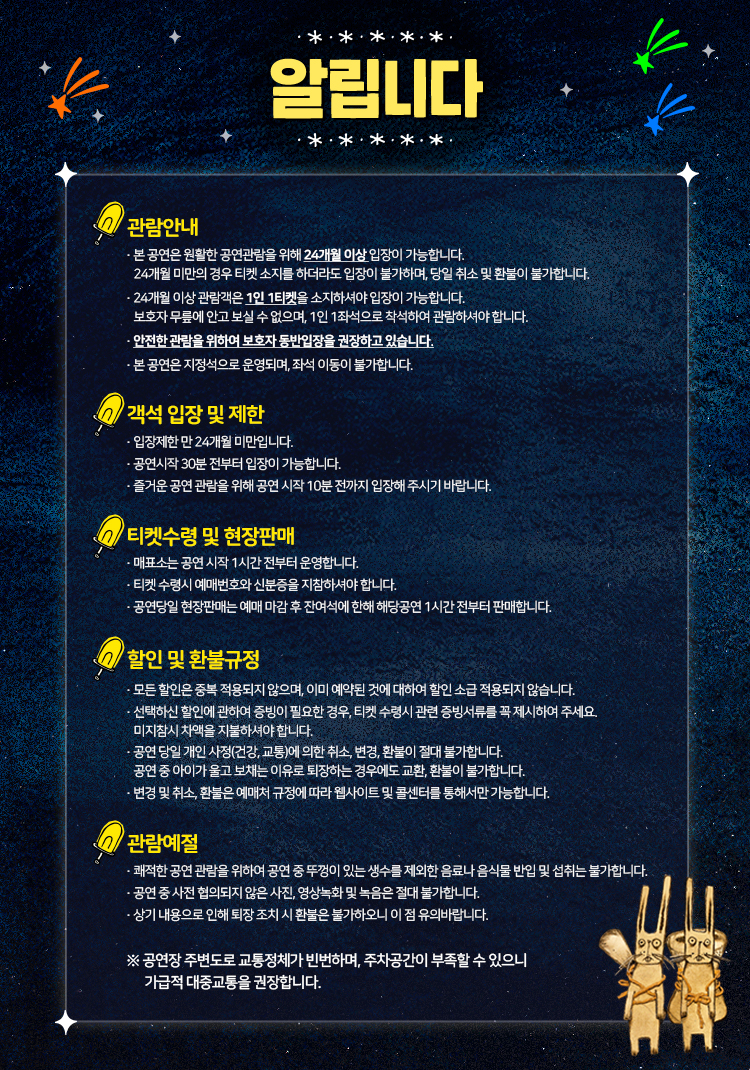 - 24개월 이상 관람 가능(24개월 미만 입장 불가)