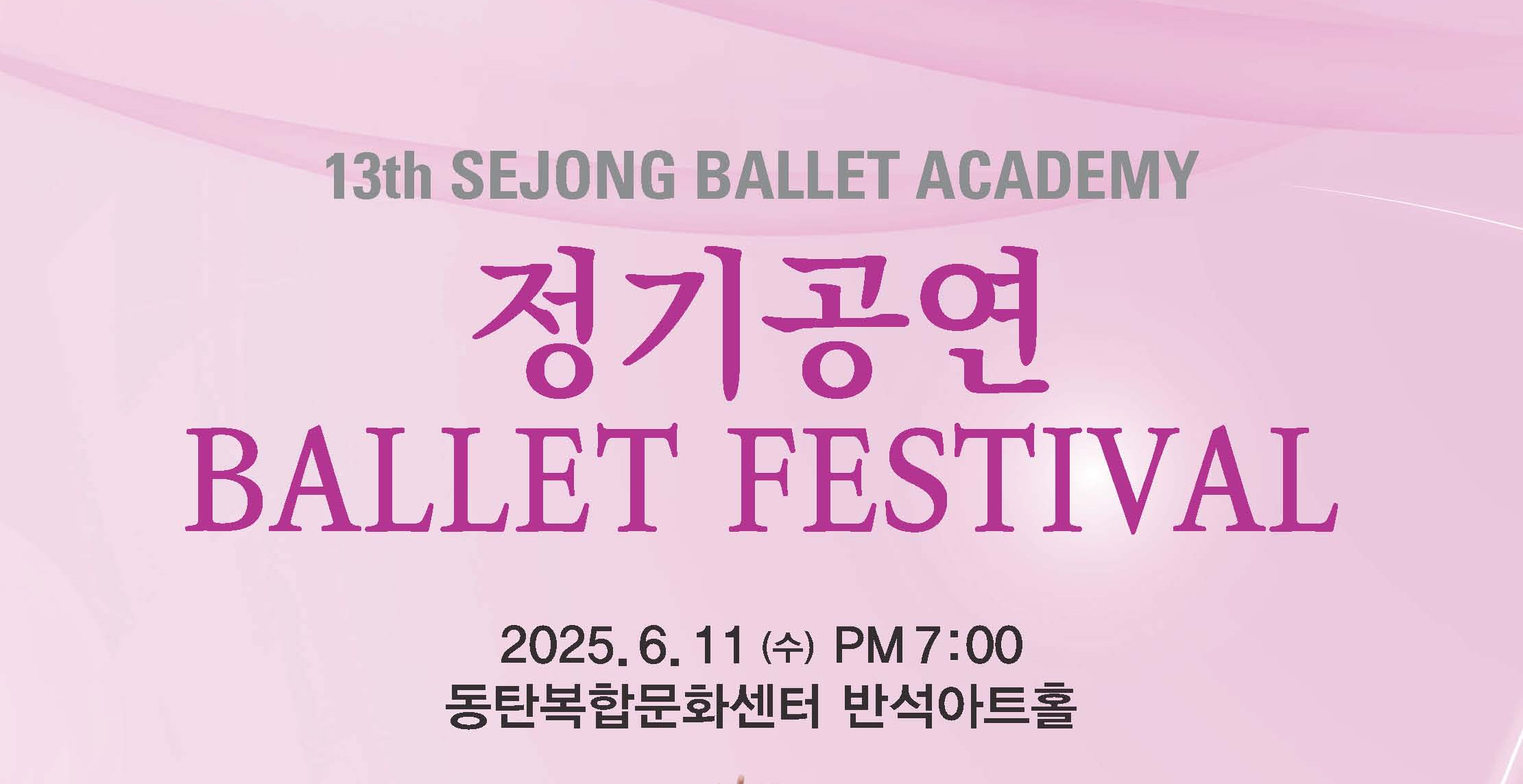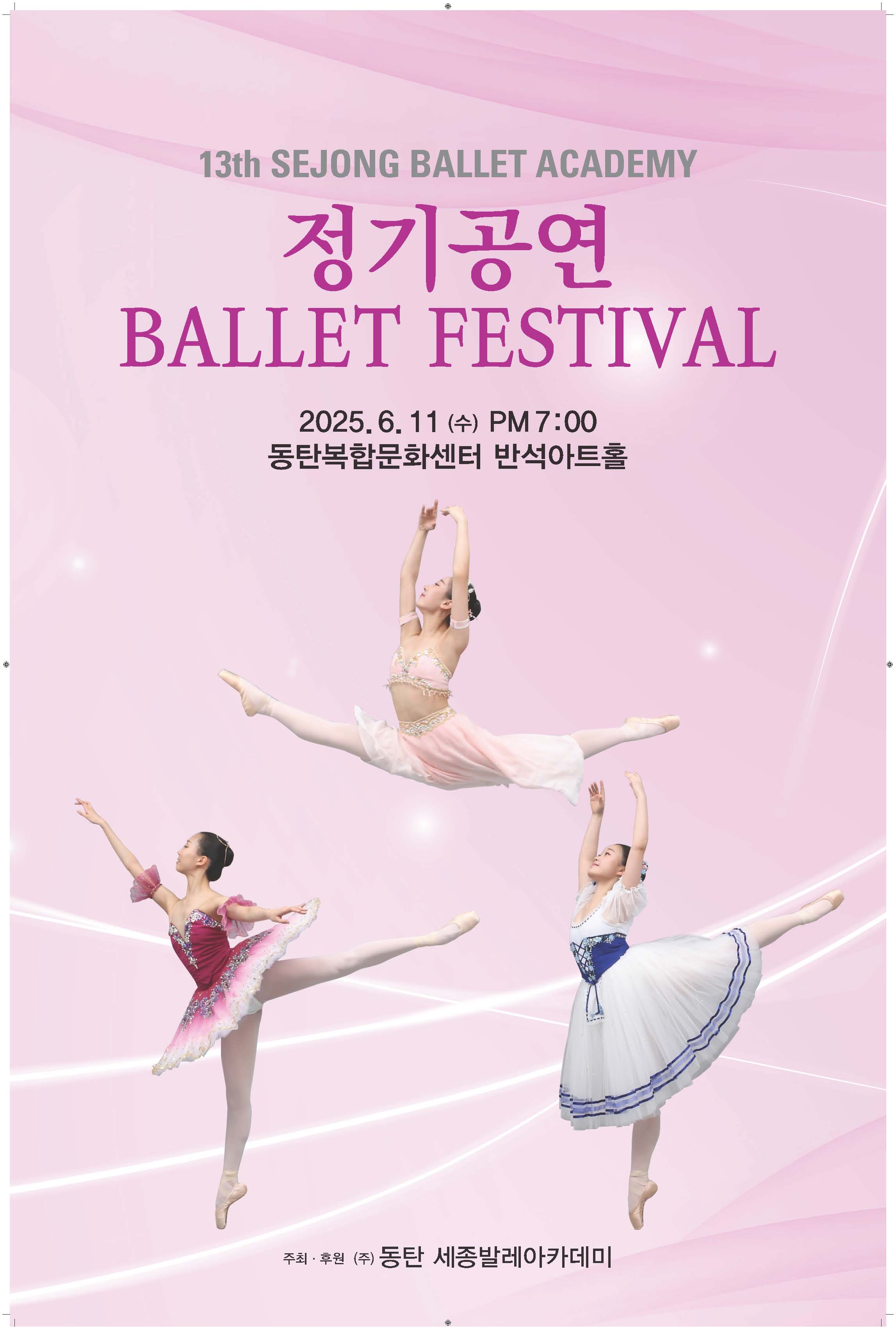 【[공 연]대관공연】정기공연 BALLET FESTIVAL 장소 동탄복합문화센터 반석아트홀 기간 2025년 6월 11일 ~ 2025년 6월 11일 요일 수 공연시간 2025년 6월 11일(수) 19:00, 소요시간 120분 티켓정보 전석일만원 관람등급 전체관람가 문의 031-8015-2944 . 발레페스티벌_목록이미지.jpg [ Size : 475.85KB, Down : 86 ] 미리보기 다운로드 발레페스티벌_목록이미지 발레페스티벌 수정.jpg [ Size : 257.66KB, Down : 88 ] 미리보기 다운로드 발레페스티벌 수정 목록보기