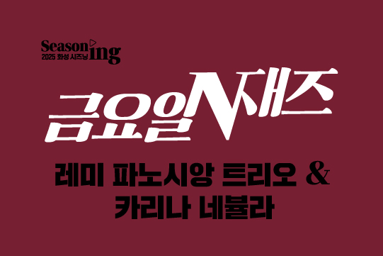 Seasoning 2025 화성 시즈닝 금요일N재즈 레미 파노시앙 트리오&카리나 네뷸라 2025 반석아트홀 9.19 Fri 730 pm 티켓가격 전석4만원 관람연령 8세(초등학생)이상 문의 1588 5234 주최 화성특례시 주관 화성시문화관광재단 위탁예산 2,330백만원