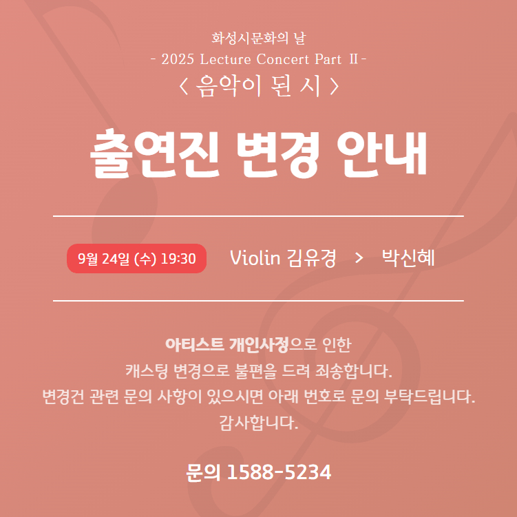 【[공 연]기획공연】[화성시 문화의 날] 렉처 콘서트 PARTII <음악이 된 시>