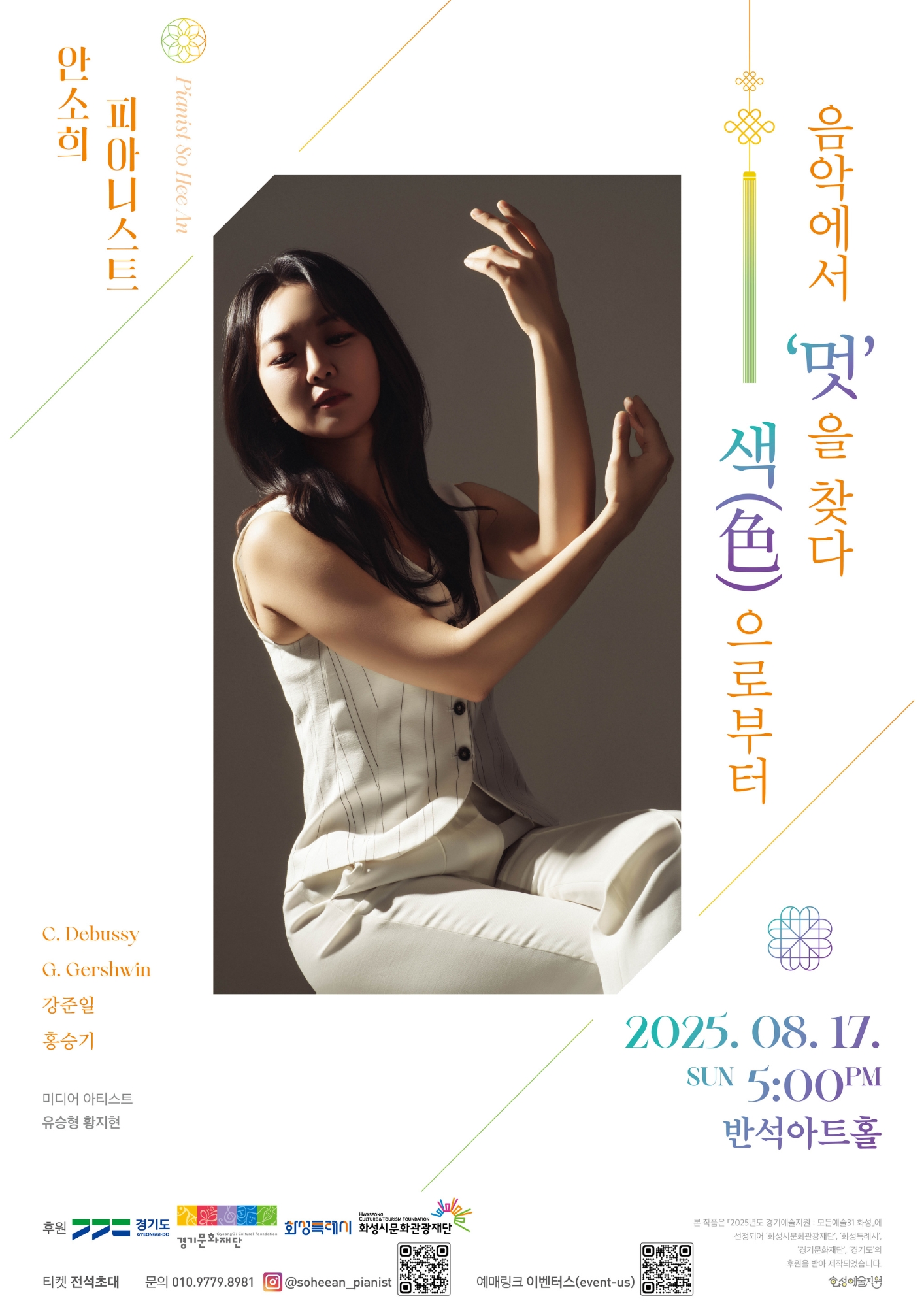 【[공 연]대관공연】음악에서 ‘멋’을 찾다 : 색(色)으로부터 장소 반석아트홀 기간 2025년 8월 17일 ~ 2025년 8월 17일 요일 일 공연시간 17:00 티켓정보 전석 초대 관람등급 전체 관람가 문의 0l0-9779-8981 문의: 0l0-9779-8981 안소희_목록이미지.jpg [ Size : 25.71KB, Down : 62 ] 미리보기 다운로드 안소희_목록이미지 안소희_포스터(A4).jpg [ Size : 847.47KB, Down : 62 ] 미리보기 다운로드 안소희_포스터(A4) 안소희_상세이미지.jpg [ Size : 1.2MB, Down : 571 ] 미리보기 다운로드 안소희_상세이미지 목록보기