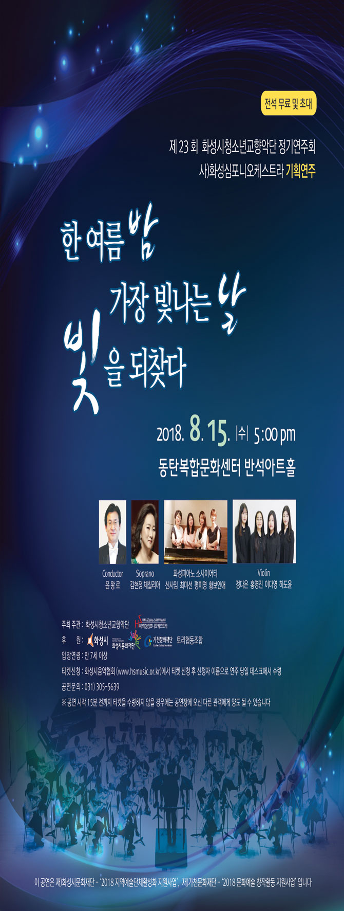 - 전석무료 (www.hsmusic.or.kr에서 티켓신청 후, 연주당일 티켓박스에서 현장수령)