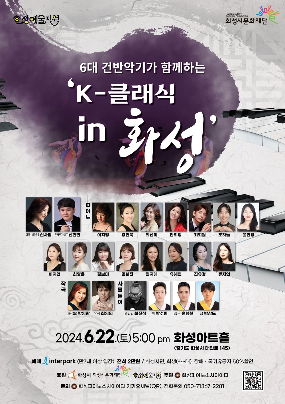 [2024년 화성예술활동지원] 6/22(토) 화성피아노소사이어티 - <6대 건반악기와 함께하는 'K-클래식 in 화성'>