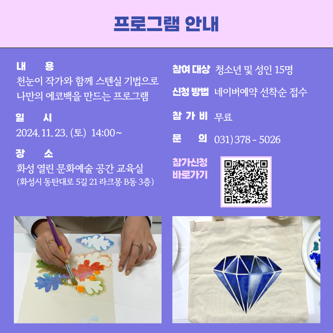 [화성 열린 문화예술 공간] 기획전시 연계프로그램 스텐실 기법 체험 <나만의 에코백 만들기 : 내적풍경> 참여자 모집