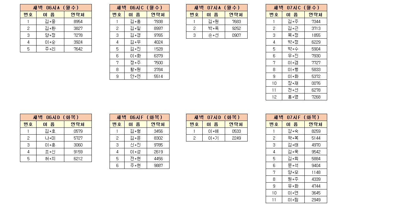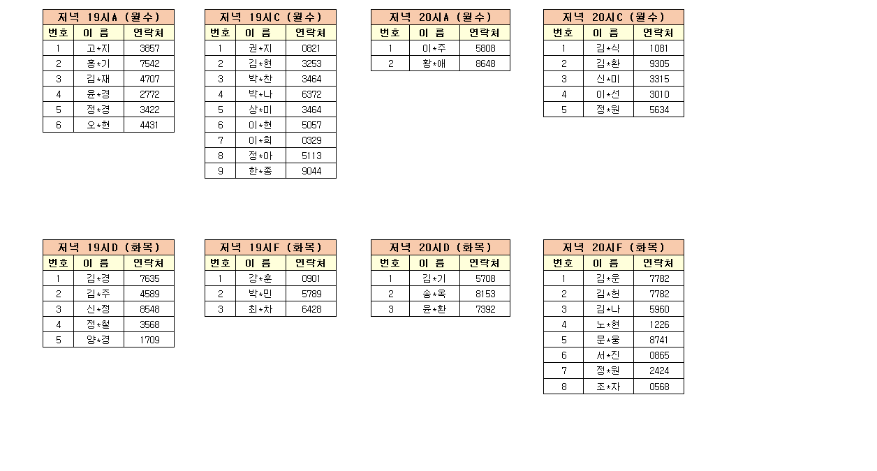 -강습반명, 성명, 전화번호 뒷자리, 강습요일을 확인하시고 강습에 참여해 주시기 바랍니다.