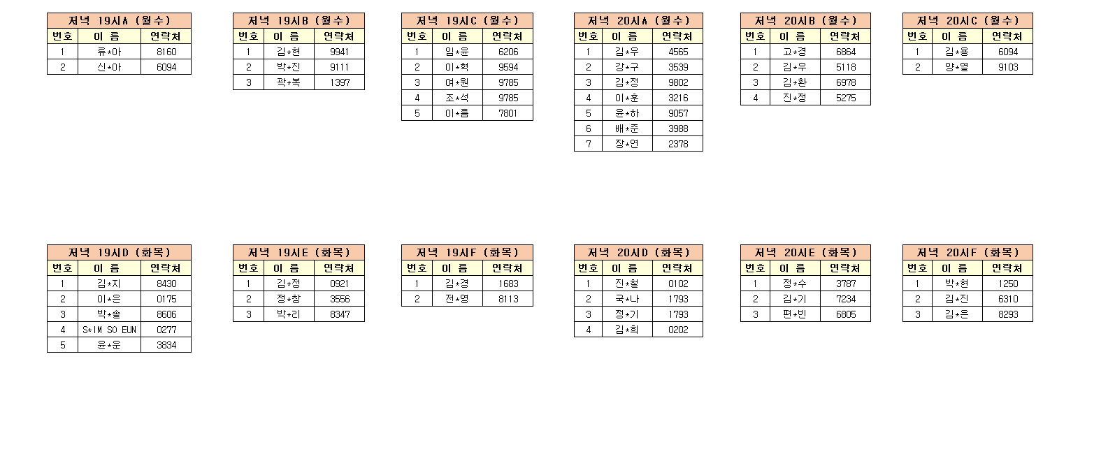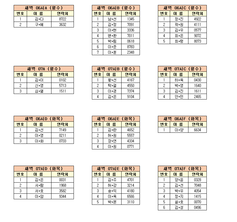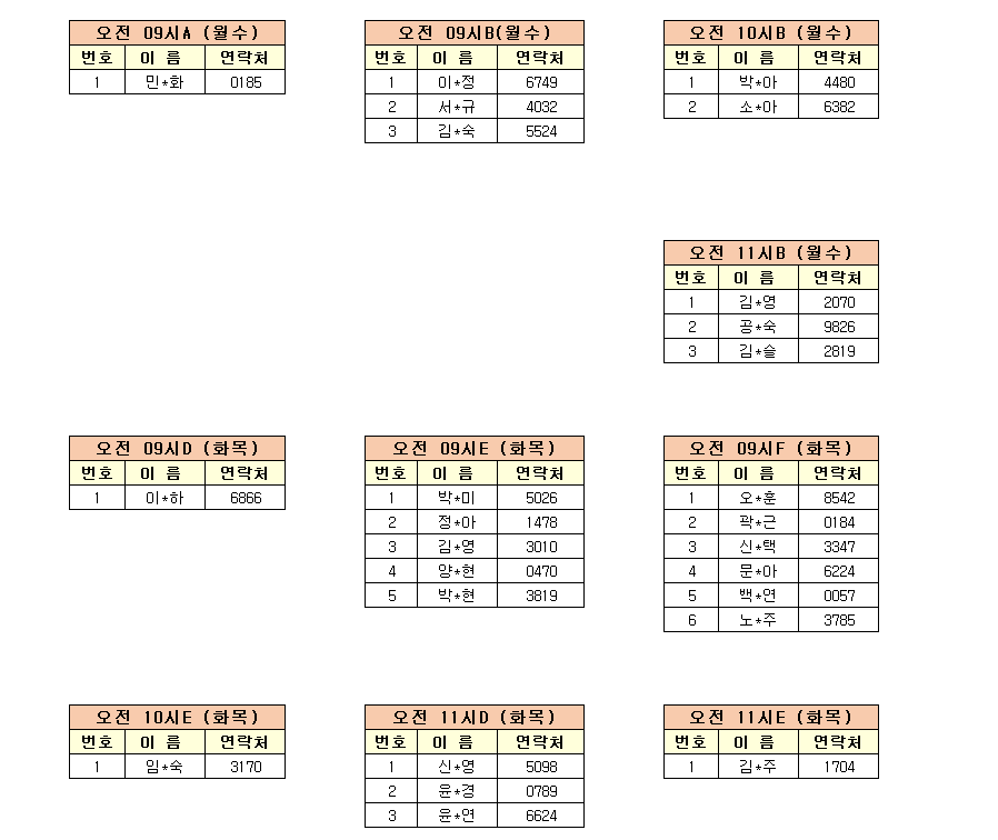 -강습반명, 성명, 전화번호 뒷자리, 강습요일을 확인하시고 강습에 참여해 주 시기 바랍니다.