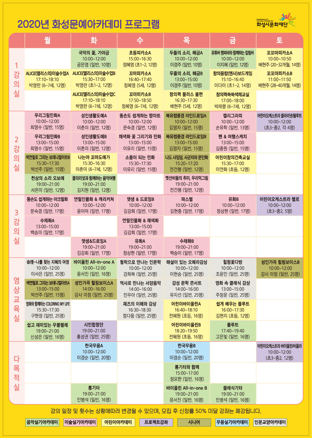 [화성문예아카데미] 2020년 화성문예아카데미 수강생 모집안내
