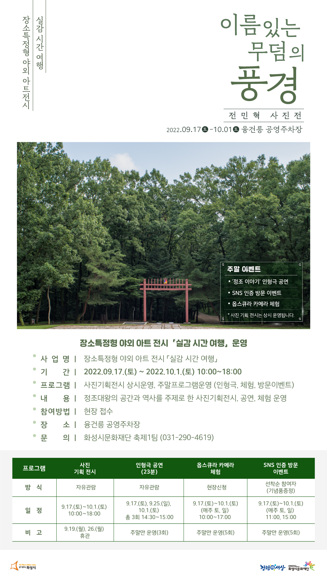 -내 용 : 정조대왕의 공간과 역사를 주제로 한 사진기획전시, 공연, 체험 운영