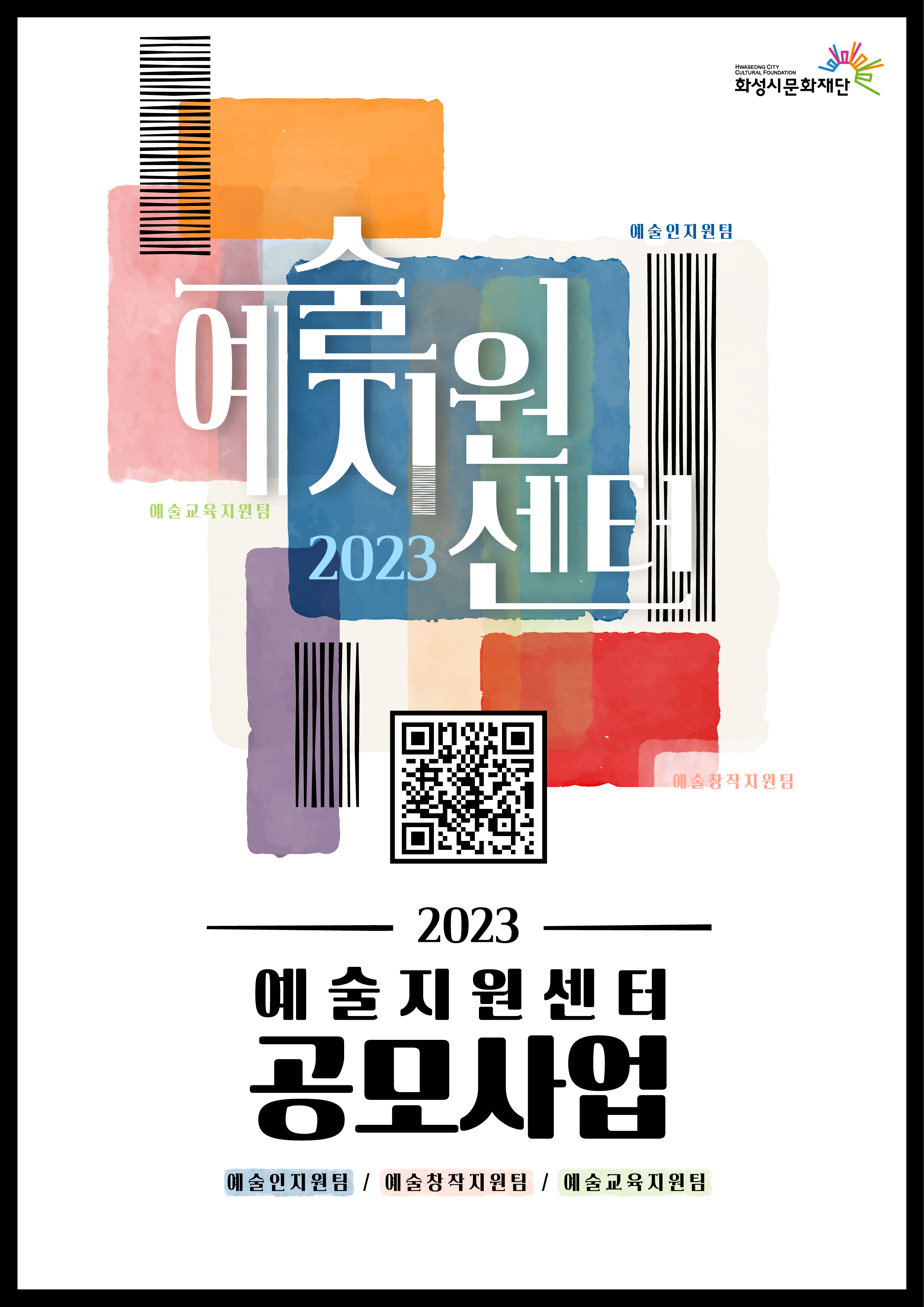 기존 | 화성시 고유의 창작지원사업으로, 공연·시각·문학 분야 2023년도 신작의 예술창작활동지원(기획지원/창작활동지원) | 공고 : 1월 19일(목)~1월 31일(화) 접수 : 2월1일(수)~2월12일(일) | 화성시 거주(소재) 예술인(단체) | 화성시문화재단 홈페이지 *이메일 접수 | 예술창작지원팀 031-290-4672 | |