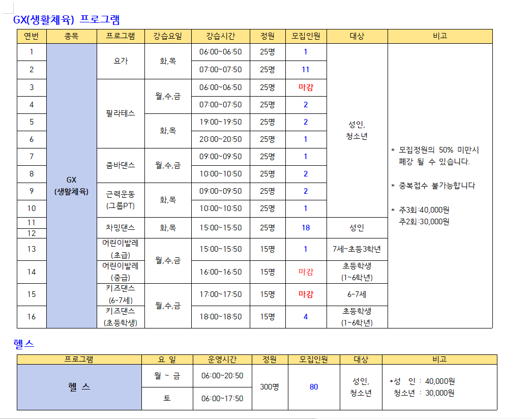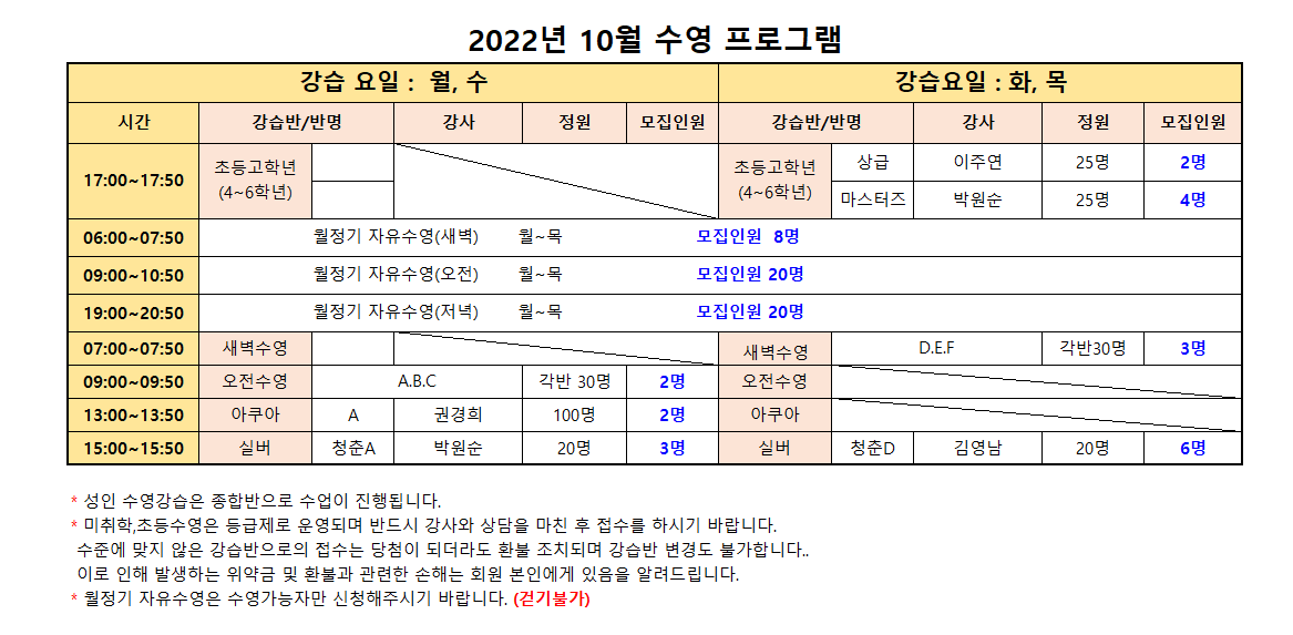 2022년 10월 스포츠 프로그램 추가모집 안내