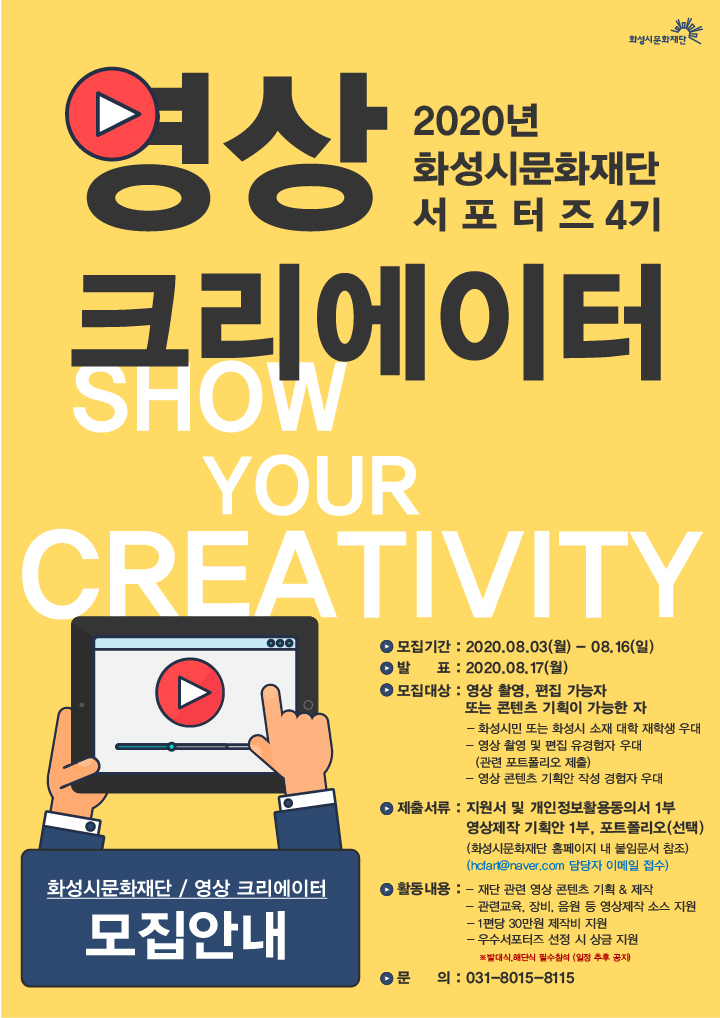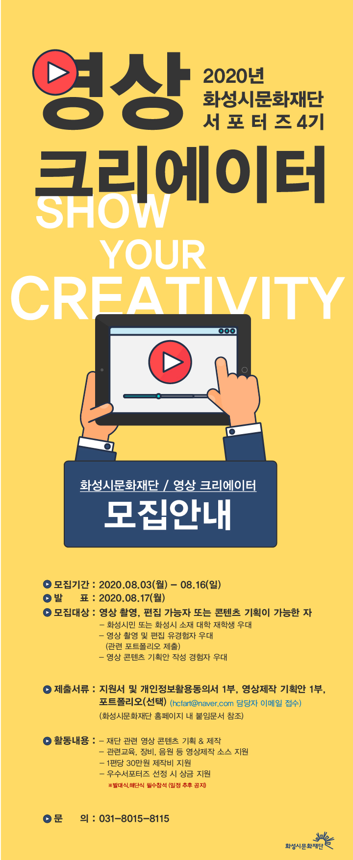 화성시문화재단 서포터즈 4기 '영상 크리에이터' 모집안내