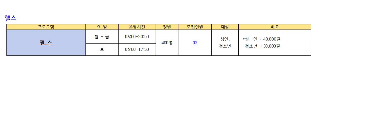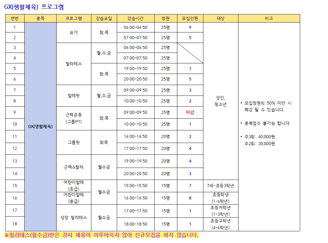 ● 모집프로그램: 수영 프로그램, GX(생활체육), 헬스