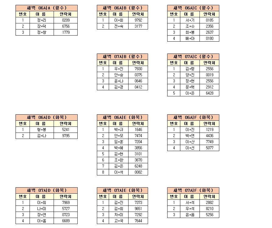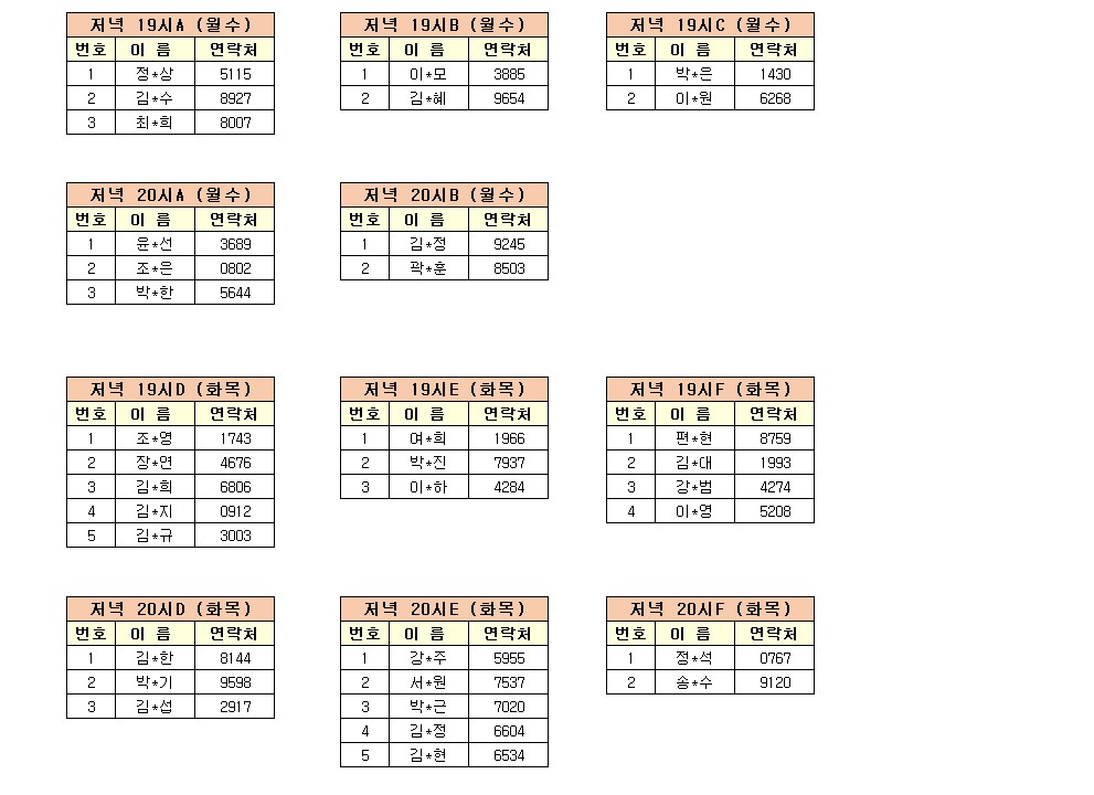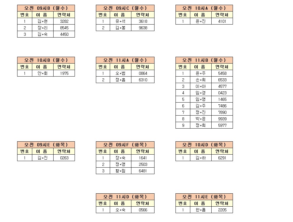 - 강습반명, 성명, 전화번호 뒷자리, 강습요일을 확인하시고 강습에 참여해 주시기 바랍니다.