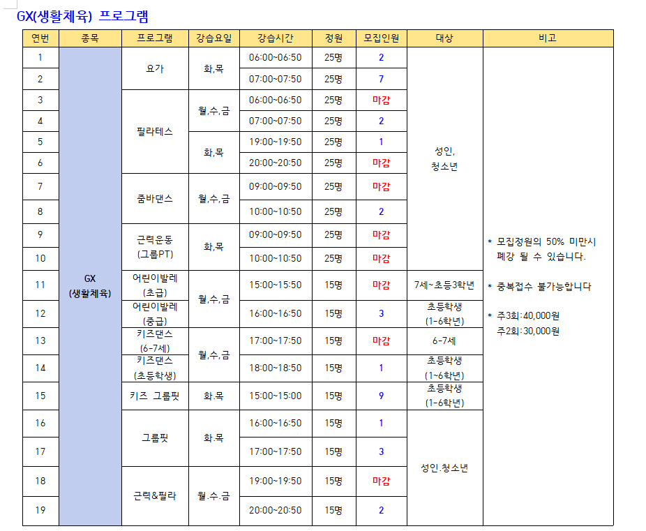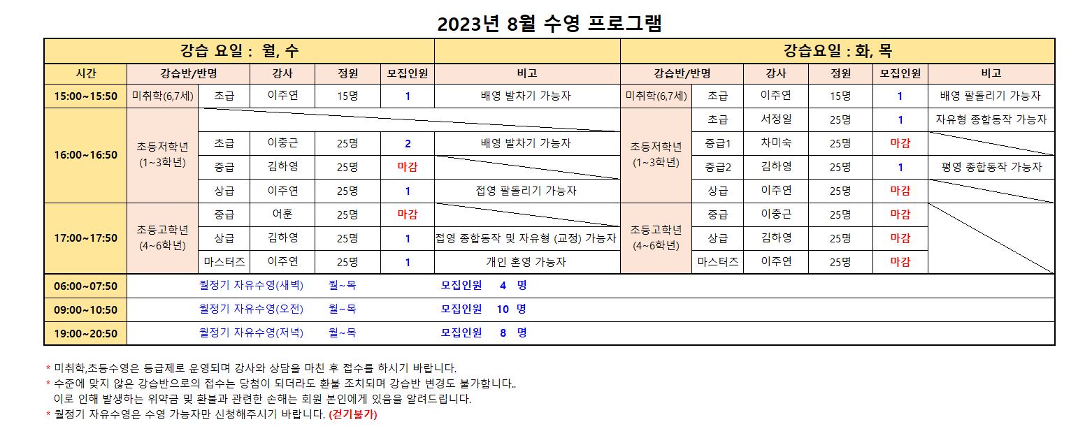 2023년 8월 스포츠 프로그램 추가모집 안내