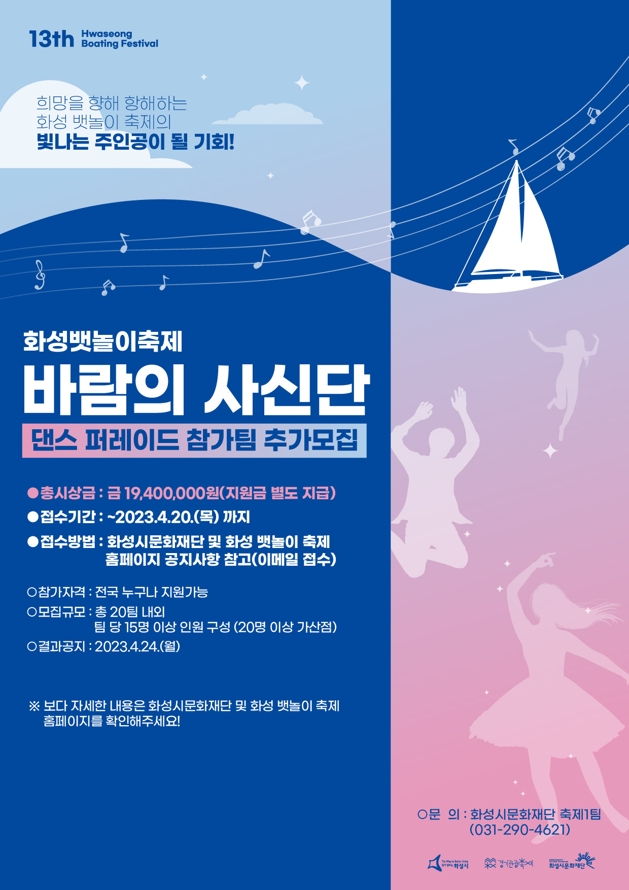 「제13회 화성 뱃놀이 축제」바람의 사신단 댄스 퍼레이드 참가팀 추가모집 공고 -
