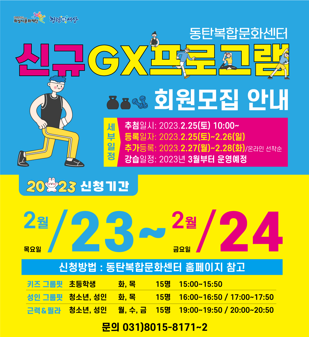 동탄복합문화센터에서 GX프로그램을 새롭게 추가 개설하여 신규 회원을 모집합니다.