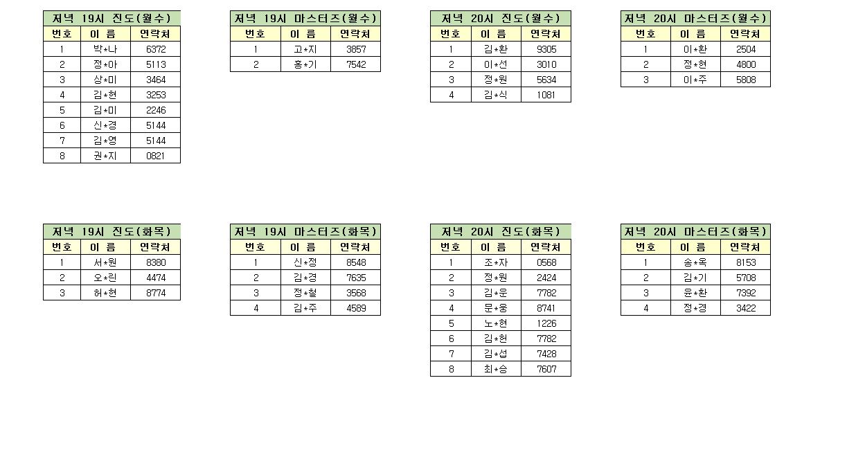 ● 아쿠아로빅(월수)반은 강사 채용이 이루어지지 않아 1월 강습 대기자 등록이 없습니다.