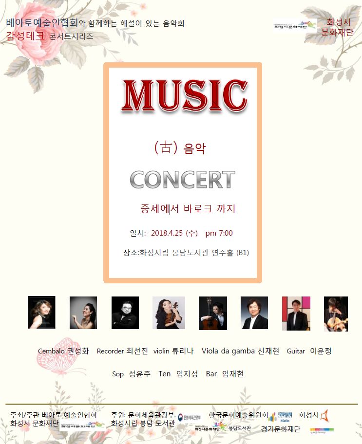 2018 지역예술활동지원사업 선정 단체 공연 ' 고 음악 콘서트-중세에서 바로크까지' 작성자 관리자 작성일 2018년 4월 30일 18시 54분 10초 조회 1,022 K-006.jpg [ Size : 85.32KB, Down : 426 ] 미리보기 다운로드 2018 지역예술활동지원사업 선정 단체 공연인 '고 음악 콘서트'가 진행되오니 시민여러분의 많은 관심 부탁드립니다. 목록보기