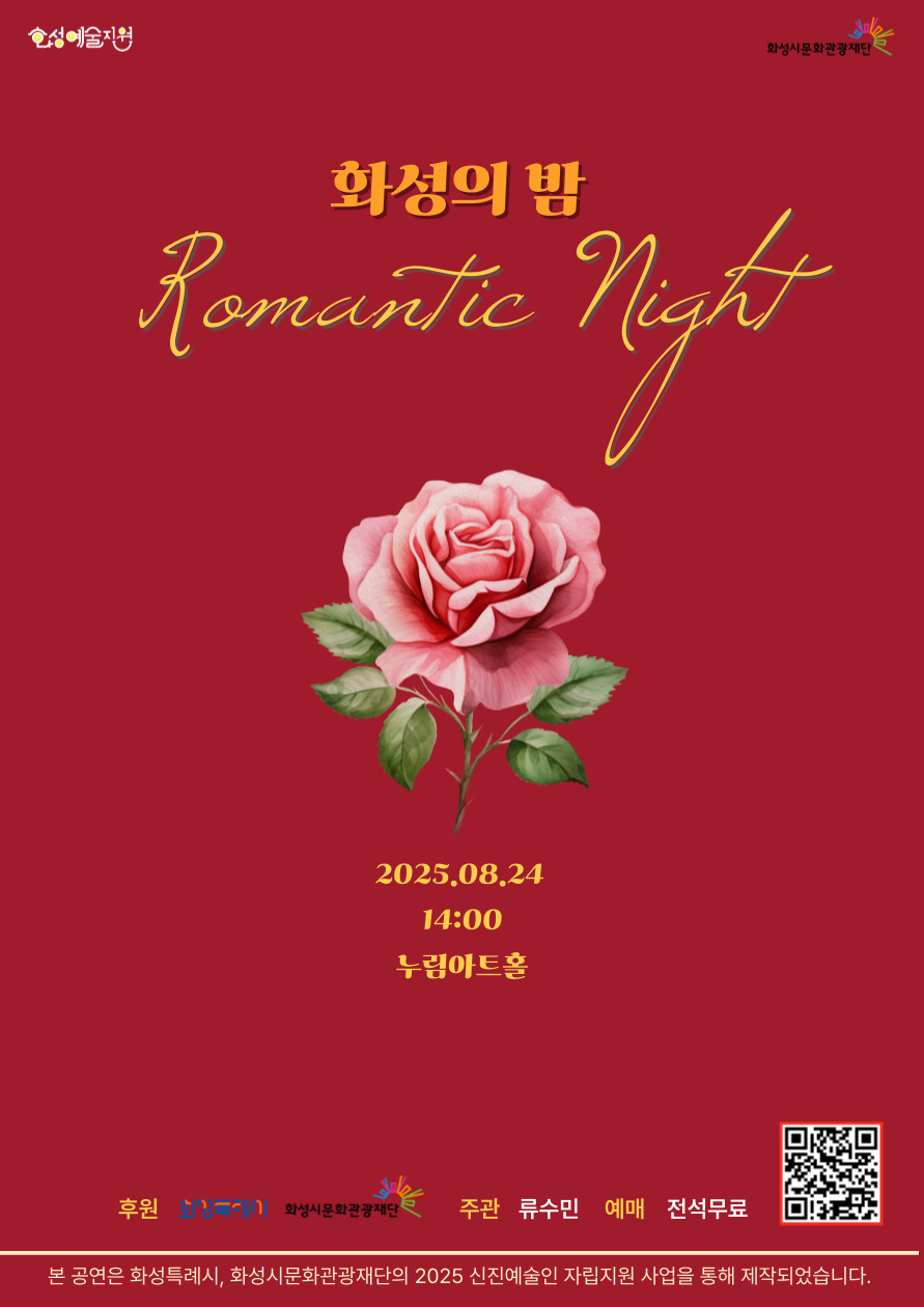 [2025 신진예술인 자립지원] 류수민 공연 화성의 밤 Romantic night (8.24 14:00)