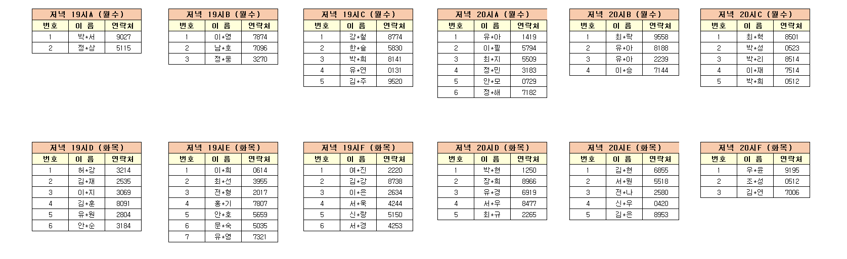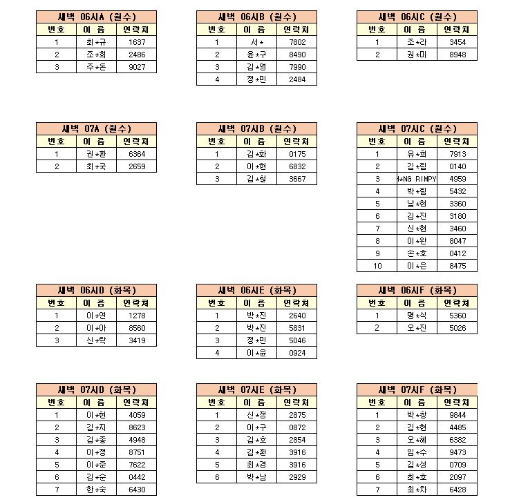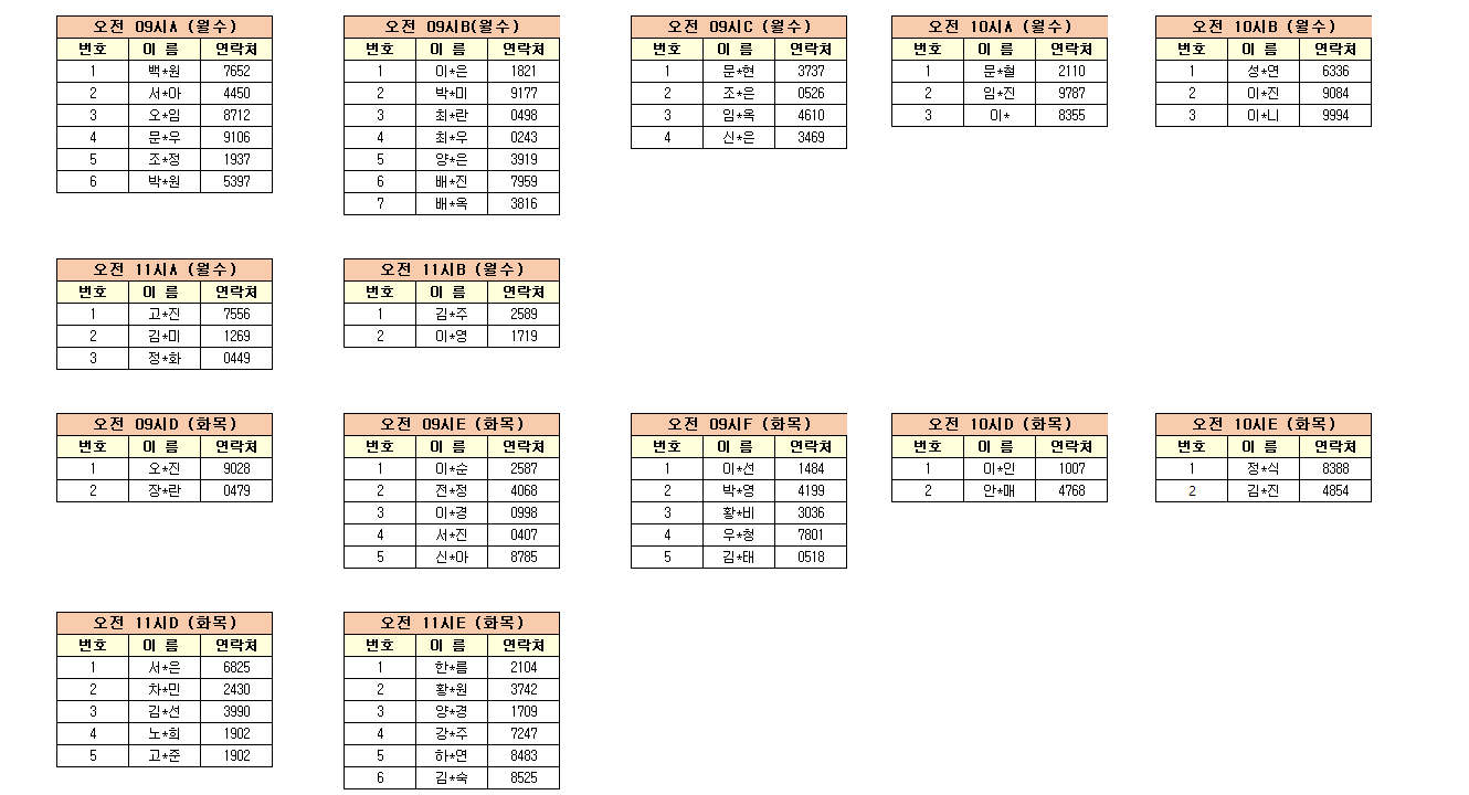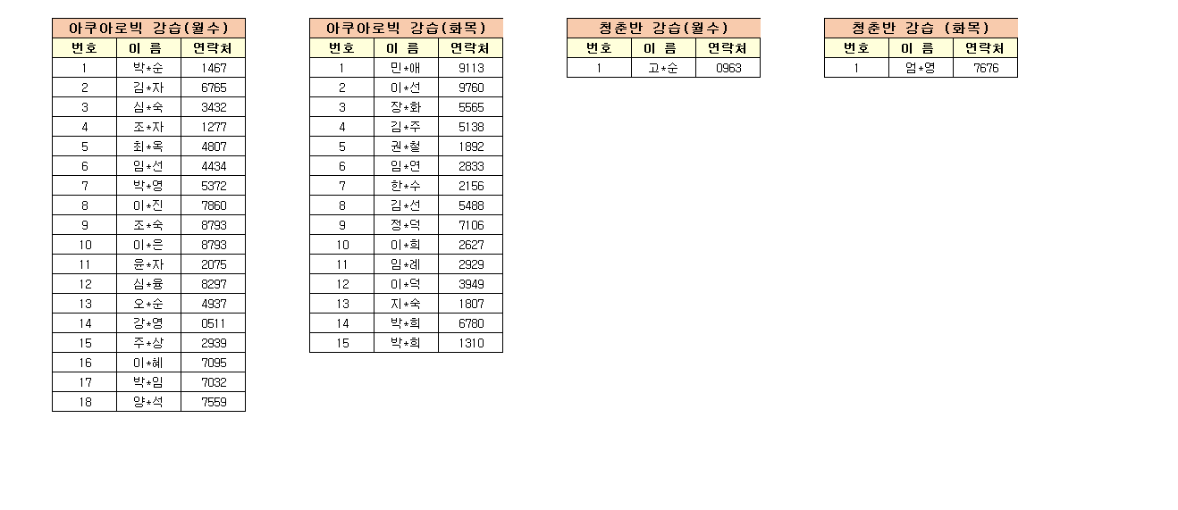 -강습반명, 성명, 전화번호 뒷자리, 강습요일을 확인하시고 강습에 참여해 주 시기 바랍니다.