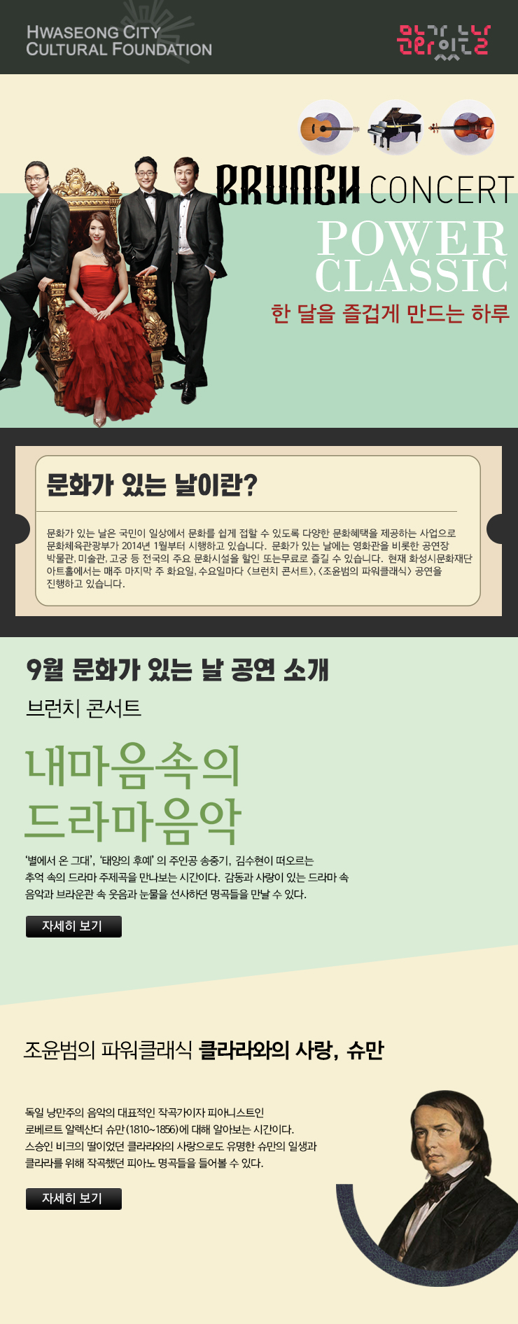 [아트홀] 9월 문화가 있는 날 공연 소개 작성자 최선영 작성일 2017년 9월 20일 10시 1분 18초 조회 1,301 문화가_있는_날_소개.jpg [ Size : 605.64KB, Down : 290 ] 미리보기 다운로드 목록보기