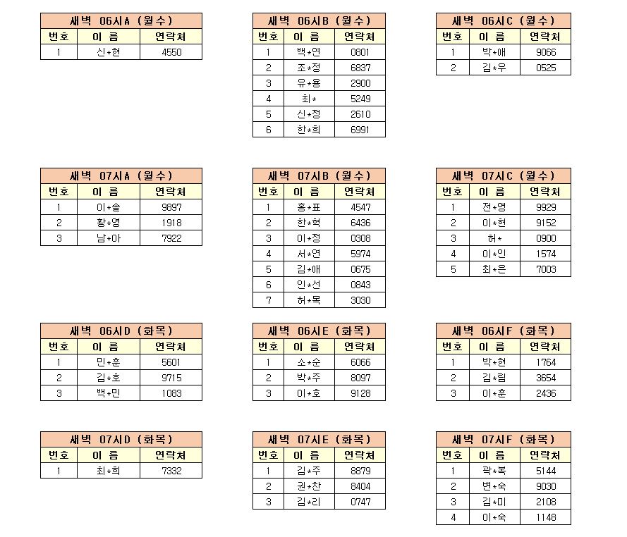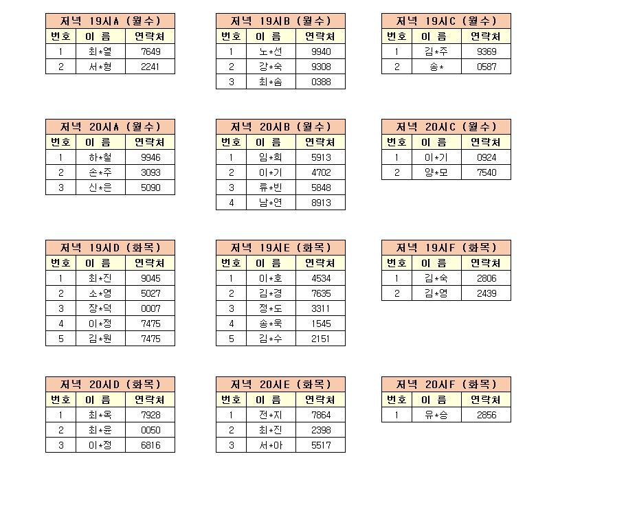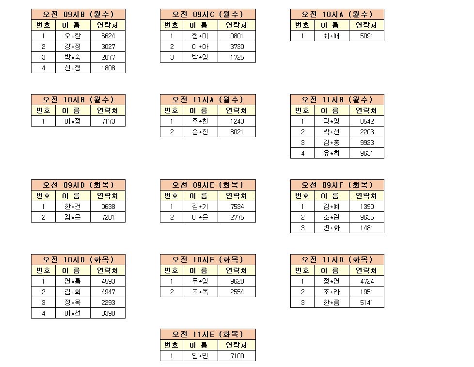 -강습반명, 성명, 전화번호 뒷자리, 강습요일을 확인하시고 강습에 참여해 주시기 바랍니다.