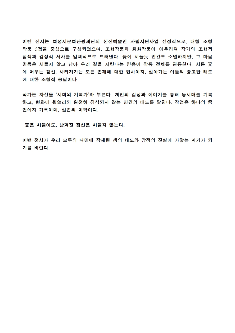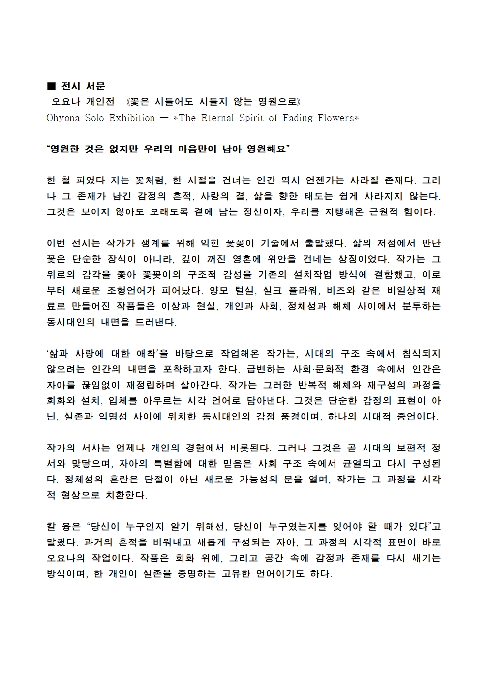 - 행사명: 오요나 개인전 《꽃은 시들어도 시들지 않는 영원으로》