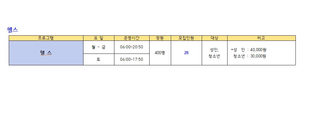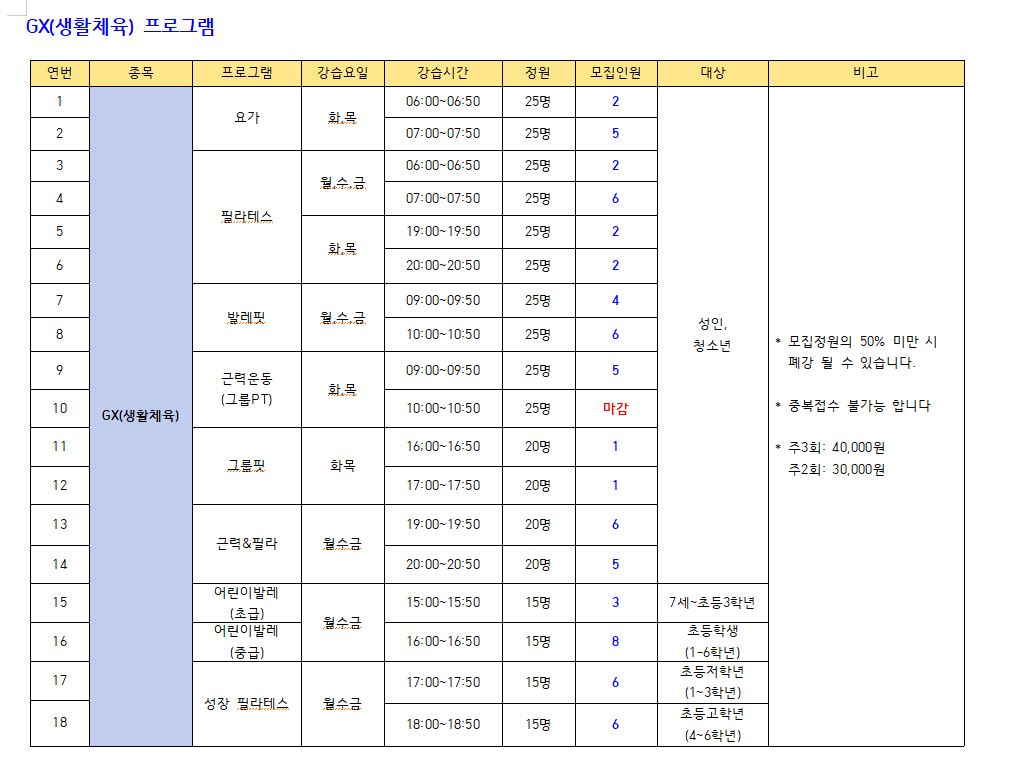 ● 모집프로그램: 수영 프로그램, GX(생활체육), 헬스