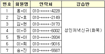★ 강습반 : 성인새벽(화목) 07:00, 성인여성(월수금) 10:00, 성인저녁(화목) 20:00