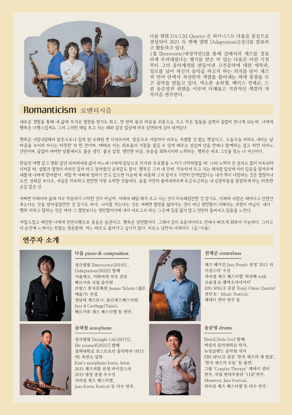 - 프로그램 : Romanticism 외 다움쿼텟 미발표 신작 4곡
