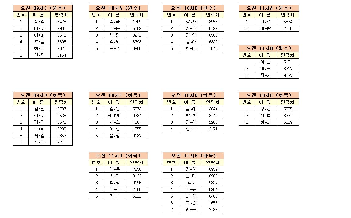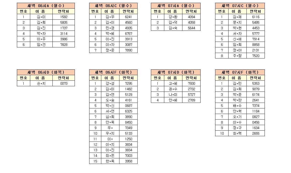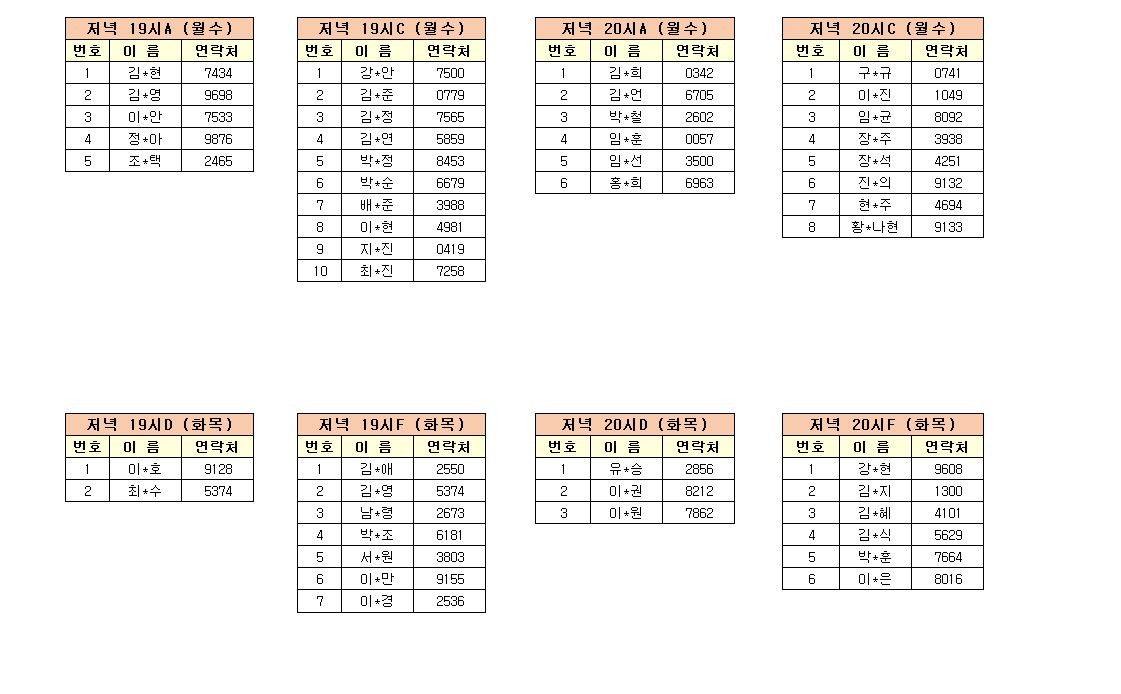 -강습반명, 성명, 전화번호 뒷자리, 강습요일을 확인하시고 강습에 참여해 주시기 바랍니다.