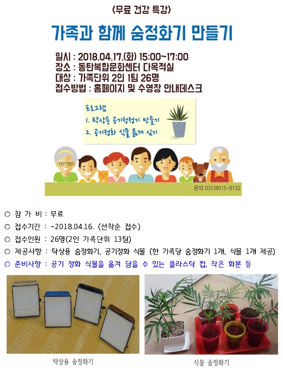 [무료 건강 특강]가족과 함께 숨정화기 만들기 작성자 관리자 작성일 2018년 4월 30일 18시 39분 42초 조회 842 20180322_103628.jpg [ Size : 256.38KB, Down : 397 ] 미리보기 다운로드 온라인 신청 링크 : http://naver.me/GTmiJRNd 목록보기