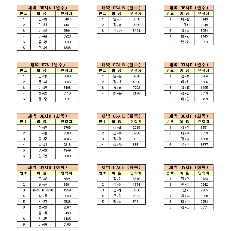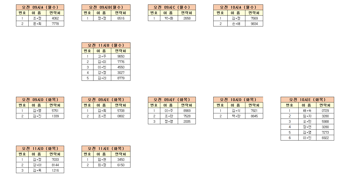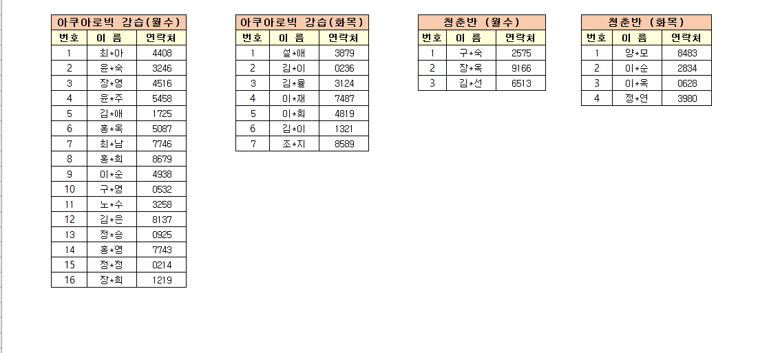 -강습반명, 성명, 전화번호 뒷자리, 강습요일을 확인하시고 강습에 참여해 주시기 바랍니다.