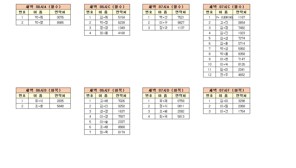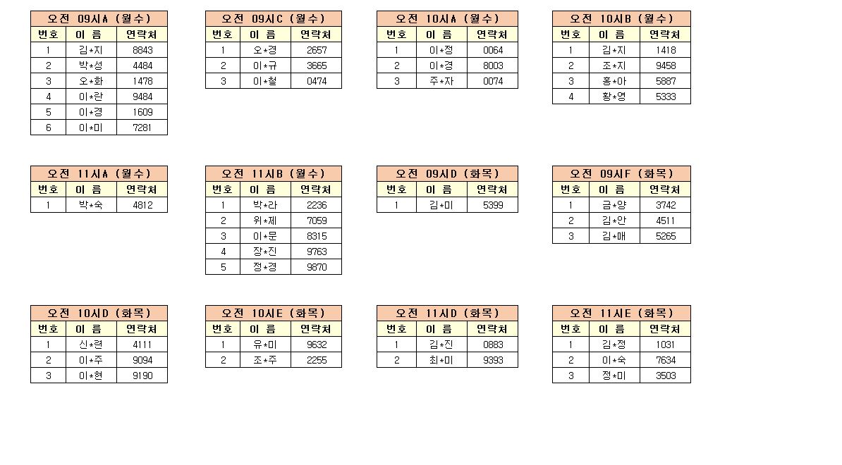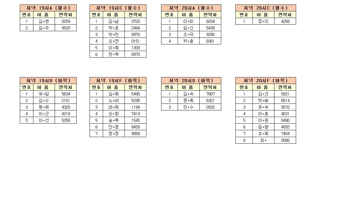 -강습반명, 성명, 전화번호 뒷자리, 강습요일을 확인하시고 강습에 참여해 주시기 바랍니다.