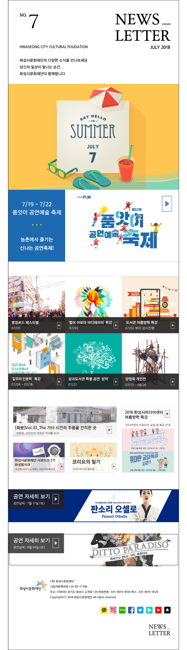 화성시문화재단 뉴스레터 7호 작성자 관리자 작성일 2018년 7월 2일 10시 14분 3초 조회 1,395 화성시문화재단뉴스레터7호_문화소식한눈에보기.jpg [ Size : 829.4KB, Down : 1,591 ] 미리보기 다운로드 목록보기