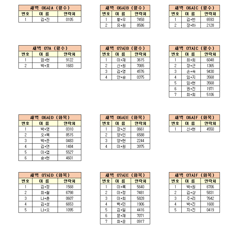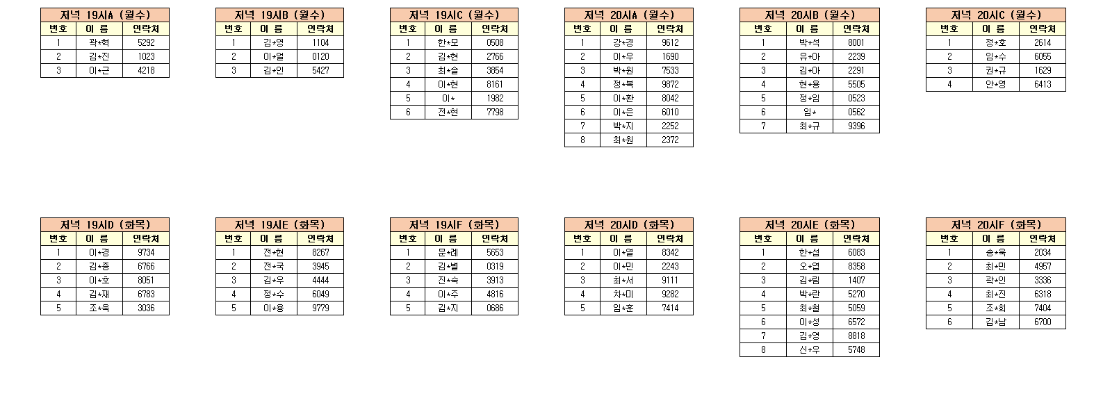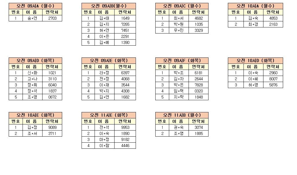 -강습반명, 성명, 전화번호 뒷자리, 강습요일을 확인하시고 강습에 참여해 주시기 바랍니다.