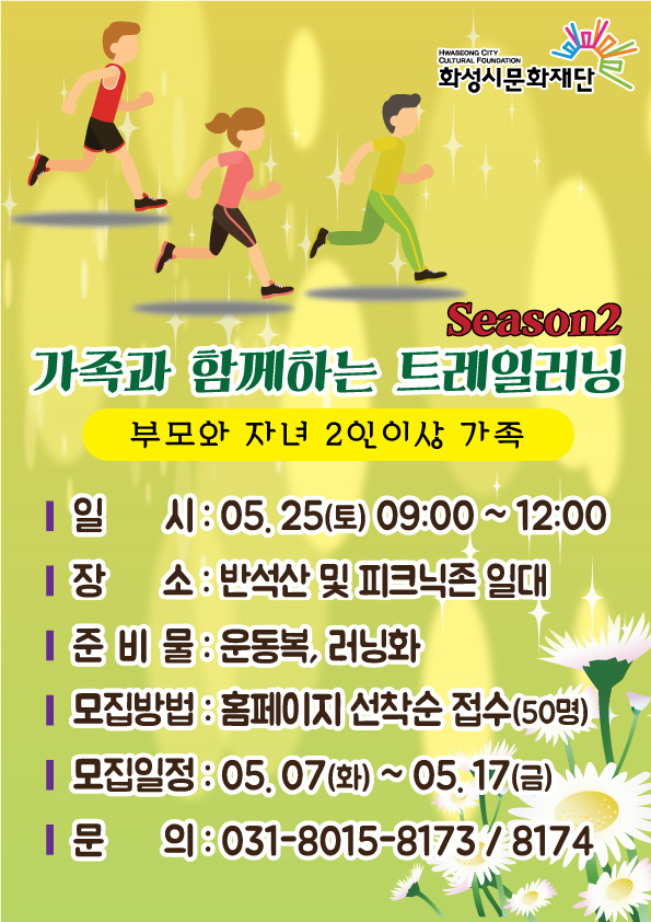 5월 가정의 달을 맞이 하여 부모-자녀가 함께 참여하는 운동과 건강 특강 '우리 가족 달리기'를 진행합니다.